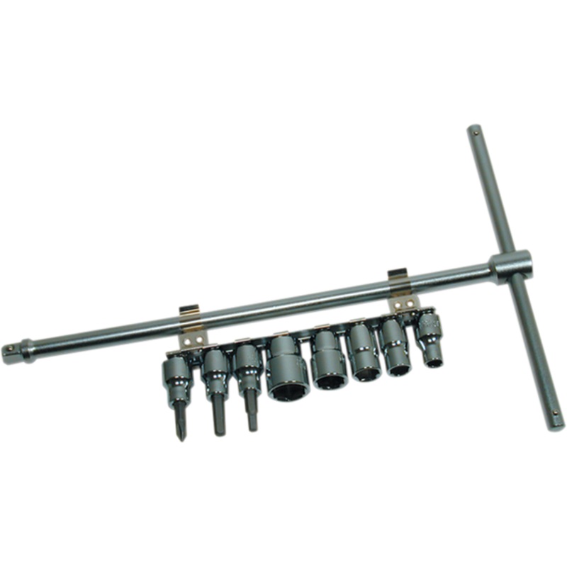 CRUZTOOLS T-Socket Set TSDS38Includes 8 mm, 10 mm, 12 mm, 14 mm and 17 mm six-point sockets, 5 mm and 6 mm hex bits and a #2 Phillips bit, Sockets store on a clip that attaches to the T-driver handle MATERIAL: