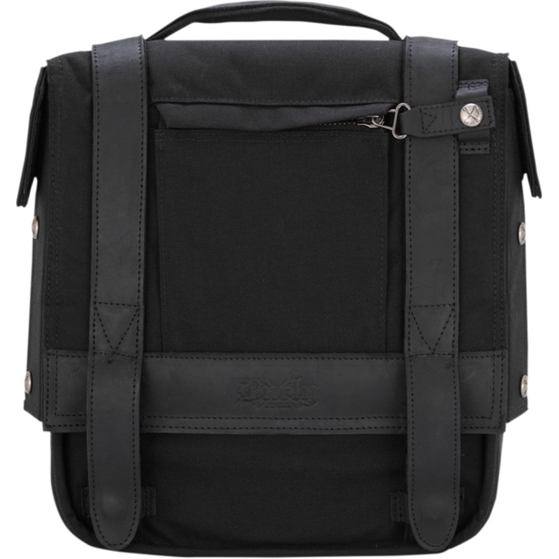 Detachable Saddlebag is black CORDURA and leather paneling for support that will age and show character over time, A durable metal and polyethylene reinforced internal frame helps the bag keep shape whether it is empty or packed to the brim, The roll top Closure and Snap/Velcro Road Shield system keeps the wind and elements out, High quality moto centric speed buckles and zippers with metal Burly embossed button snaps and accents as well as an Anti-Flail Snap System keep everything secure, Quick release pin-lock bracket system allows the saddlebag to be easily and quickly removed to be converted into a dual purpose messenger