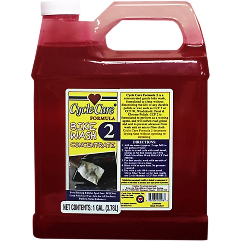 Cycle Care Formula 2 is a concentrated gentle shampoo formulated to clean and extend the life of Cycle Care Formula 3, Windshield, Paint and Chrome Polish (available separately), Formulated to perform as a wetting agent and will soften road grime and soil to prevent abrasion from wash mitt or cloth; will not strip wax or polish, Bucket wash; rinse does not require high-pressure (agitation required in extremely neglected situations), Given normal drying conditions (sunlight, good breeze or leaf blower provides virtually spot-free results), This product does not contain alkalis, acids or abrasives, Made in the U.S.A.
