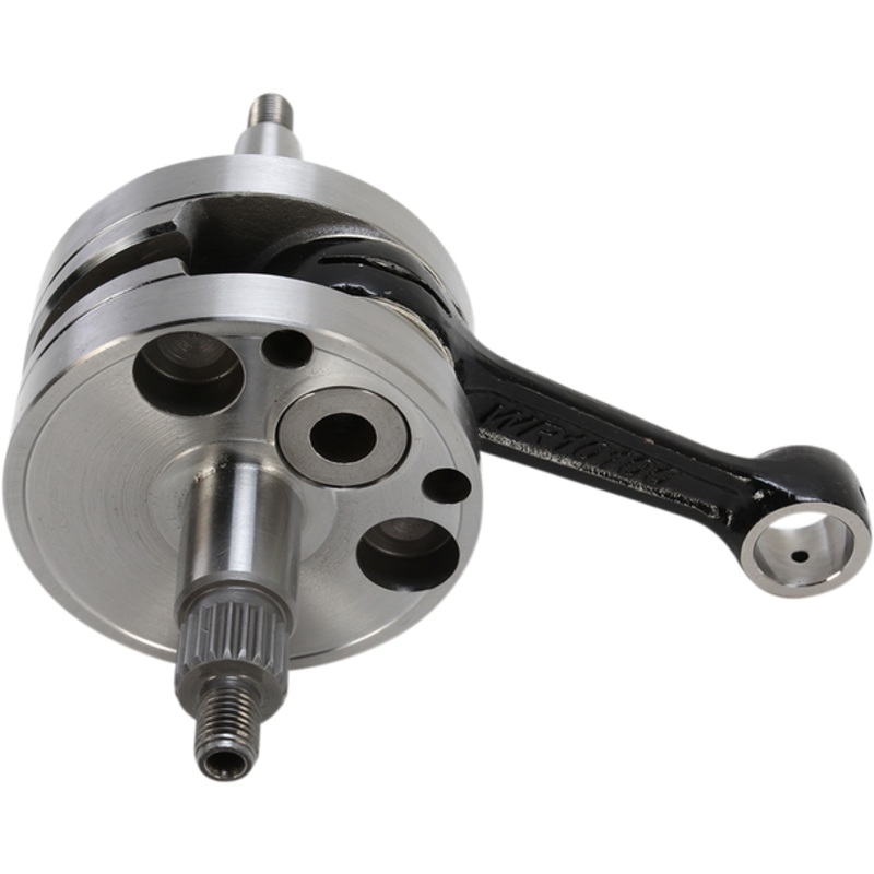 Crankshaft kits include crankshaft, top end bearing, premium main bearings and a complete bottom end gasket set that includes all seals and gaskets needed to do the job, Only one part number to stock and order, Crankshafts are factory assembled and precision trued to OEM specifications, Double-forged Wiseco connecting rods maintain superior dimensional consistency through improved grain flow, Shot-peening eliminates residual stresses and smoothly blends the rod forging surfaces, Corrosion-resistant surface treatment, Top and bottom end rod bores case hardened to 58-62 RC to optimize bearing running surface, Crank pin bearing radial running clearance is optimized to ensure maximum performance, Precision honing ensures ultra round bearing surface, Precision-engineered oiling slots maximize rod strength and bearing life, Double-drilled small ends provide the piston pin with extra lubrication and cooling, reducing distortion of top end due to thermal transfer from the piston, Silver-coated bronze phosphor thrust washers, with dimpled design to increase oil retention and reduce friction between rod and washer interface, Crank pin bearings are manufactured from the highest quality hot rolled steel; case-hardened to 58-62 RC, Caged needle roller bearings provide the highest possible rpm, Precision-machined crank webs, Wiseco complete gasket kits are made from premium materials for maximum sealing and reliability; all bearings are OEM-quality for reliability and performance