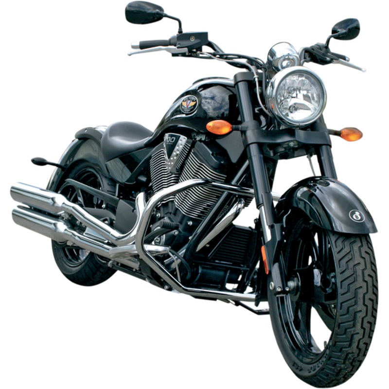 BARON Highway Bar Chrome Victory BA-7130-00Designed to work with OEM windshields, lowers, and floorboards, Large, open-hoop design gives excellent protection for your bike, while providing a great location for accessories like highway pegs, Guards bolt dir