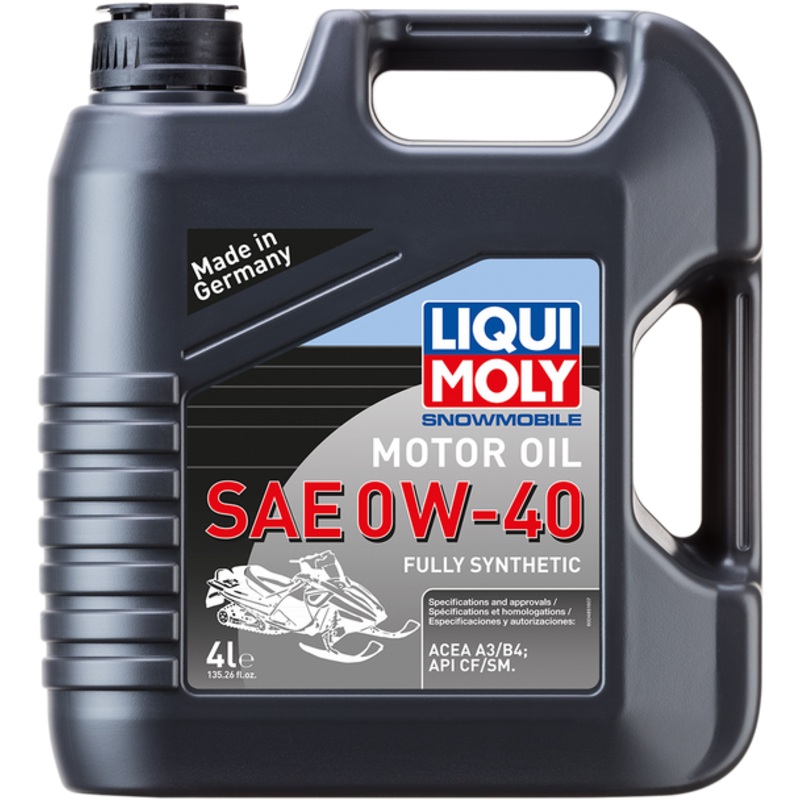 LIQUI MOLY Snowmobile Synthetic Oil 0W-40 4 L 20150A fully synthetic, low-friction motor oil specially adapted to the requirements of 4-stroke snowmobile engines, Ensures the fast oil penetration of the engine and optimum engine lubrication starting with t