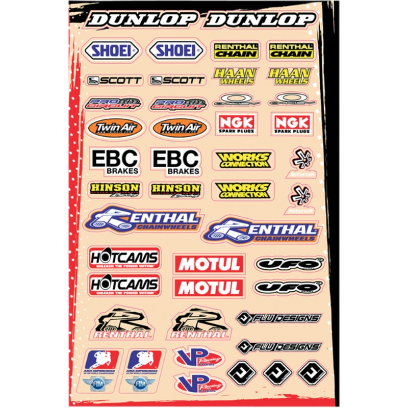 FLU DESIGNS INC. Decal Logo Kit B 00503Sub-surface printed on high-quality 15 mm vinyl; die-cut to shape, Feature industry sponsor logos, Great for bike, helmet, auto windows and tool boxes, Sheet measures 12" x 18" MATERIAL: