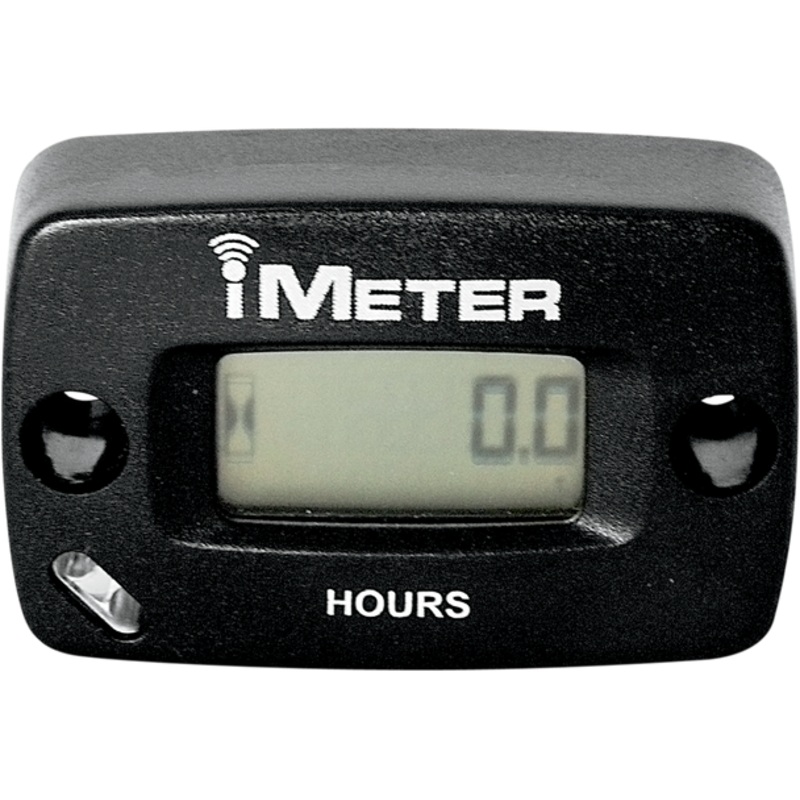 There are no connections required, Automatically starts and stops from the running of your engine by sensing the resonance of the motor, No wiring required; no power, ground or pick-up wire required – just peel and stick, Includes resettable trip as well as total-hours-accumulated modes, Includes double-sided tape and mounting screws, Waterproof; shock-resistant, Built-in battery has 5-7 year lifespan, Comes with log book to track the service life – oil changes, valve adjustments, spark plugs, settings, etc., Records and displays to 9,999.9 hours, Hour-glass symbol automatically appears when engine is running and flashes on/off to indicate counting time, Push button to display data when engine is not running, Resolution 0.1 hour, Works on any motorcycle, ATV/UTV, snowmobile or PWC automatically; 2- or 4-stroke, Made with solid-state electronics, modern LCD; iMETER has superb environmental durability and enhanced functionality, making it the best choice of all possibilities without sacrifice to performance, operation or budget, Made with ROHS-compliant components, Designed, assembled and packaged in the U.S.A.