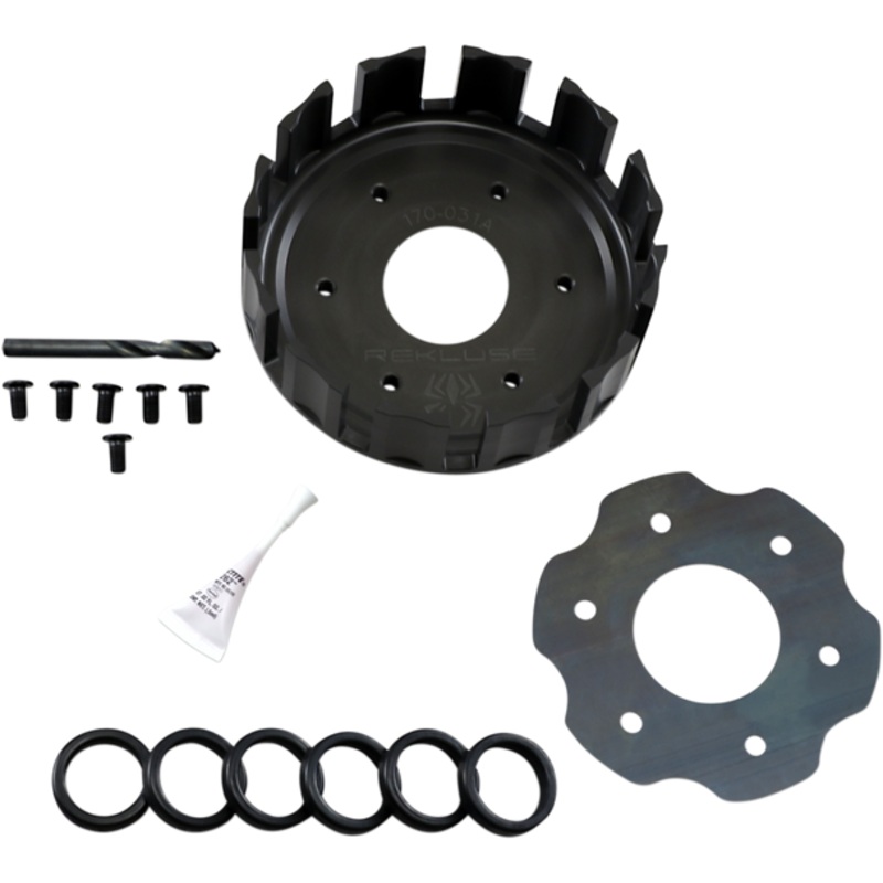 REKLUSE Clutch Basket RMS-4131Constructed from billet aluminum and hard anodized to deliver enhanced clutch modulation, Extreme durability resists notching and extends clutch life, Exclusive replaceable cushions protect your transmission from damage even i