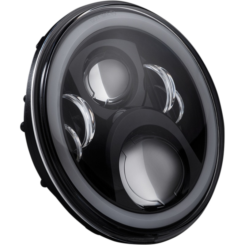 CUSTOM DYNAMICS Headlamp 7" LED Black CD-7-14-BFeatures projection style high and low beam with advanced optical D lenses for a smooth, bright white beam pattern and superior field of vision, Headlamp automatically keeps low beam LEDs illuminated when high