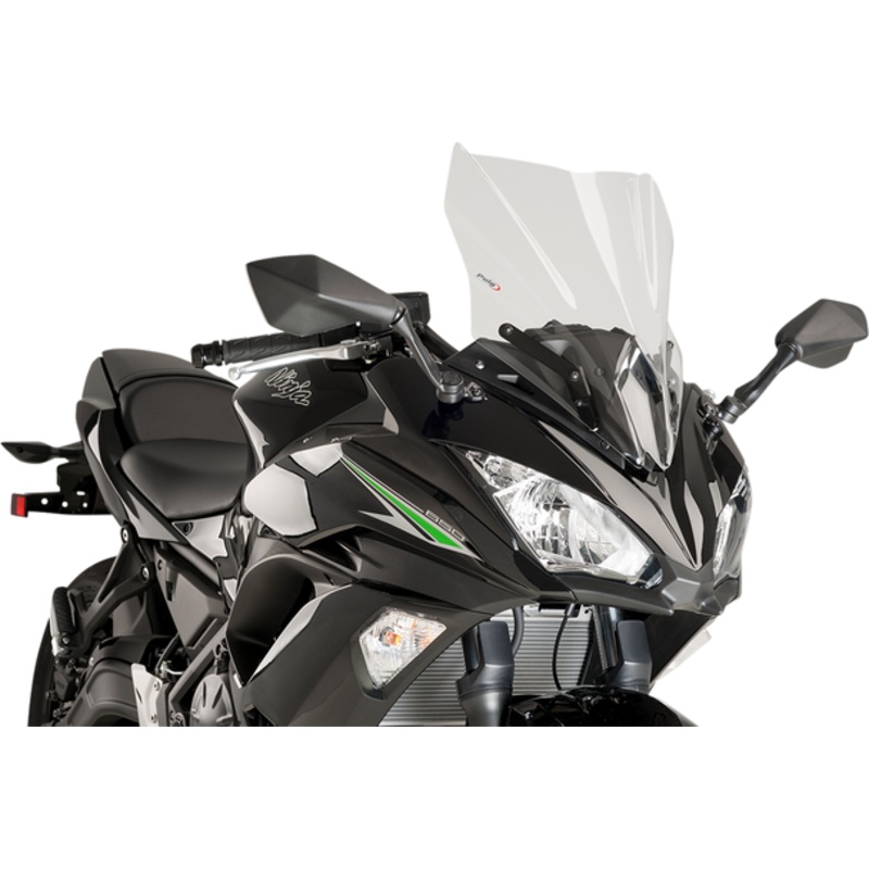 PUIG HI-TECH PARTS Race Windscreen Clear Kawasaki 9711WIt's double height diminishes the air pressure to the helmet., The Z-Racing windscreens have been tested though our virtual wind tunnel and improve the aerodynamic coefficient and wind protection on an
