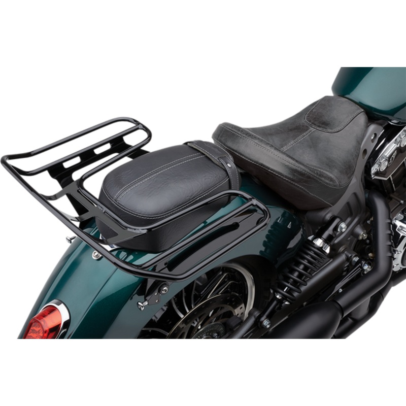 COBRA Detachable Wrap Around Rack Black Scout 502-2612BThe top of the rack is about level with the top of the seat and each rack has a kick up in the rear, There are places to attach bungee cords or mounting straps so you no longer have to scratch your bik