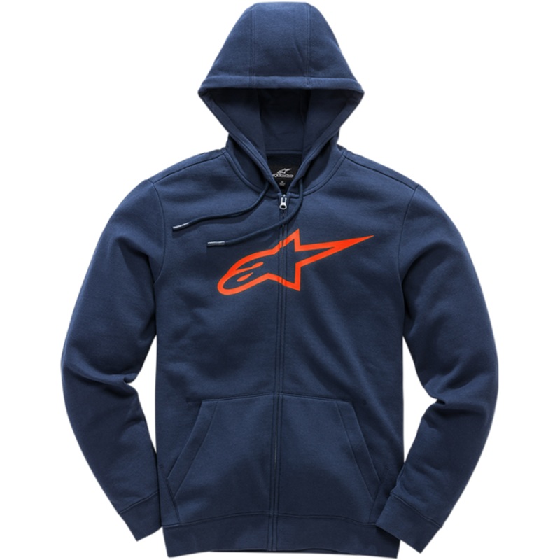 ALPINESTARS Ageless 2 Zip Hoodie Navy/Red XL 1038530527030XLPrinted logo on chest, Internal main label and external label branding, Hidden coil zipper, rib at cuffs and hem, metal eyelets and dipped drawcord tips, 80% Cotton/20% Polyester COLOR: