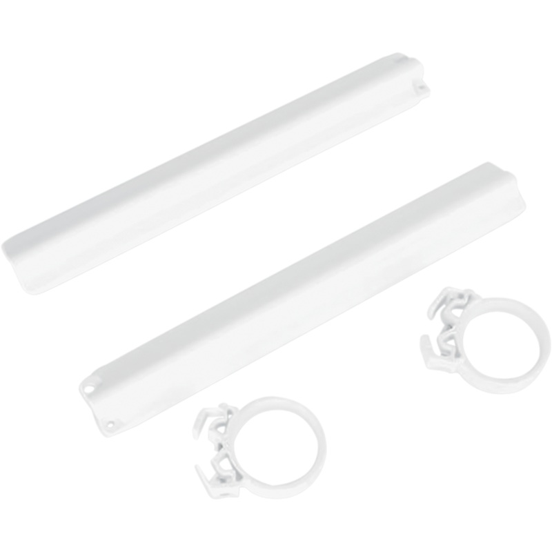 UFO Fork Cover White RM '91 SU02925041Pre-drilled pieces mount easily to stock locations MATERIAL: