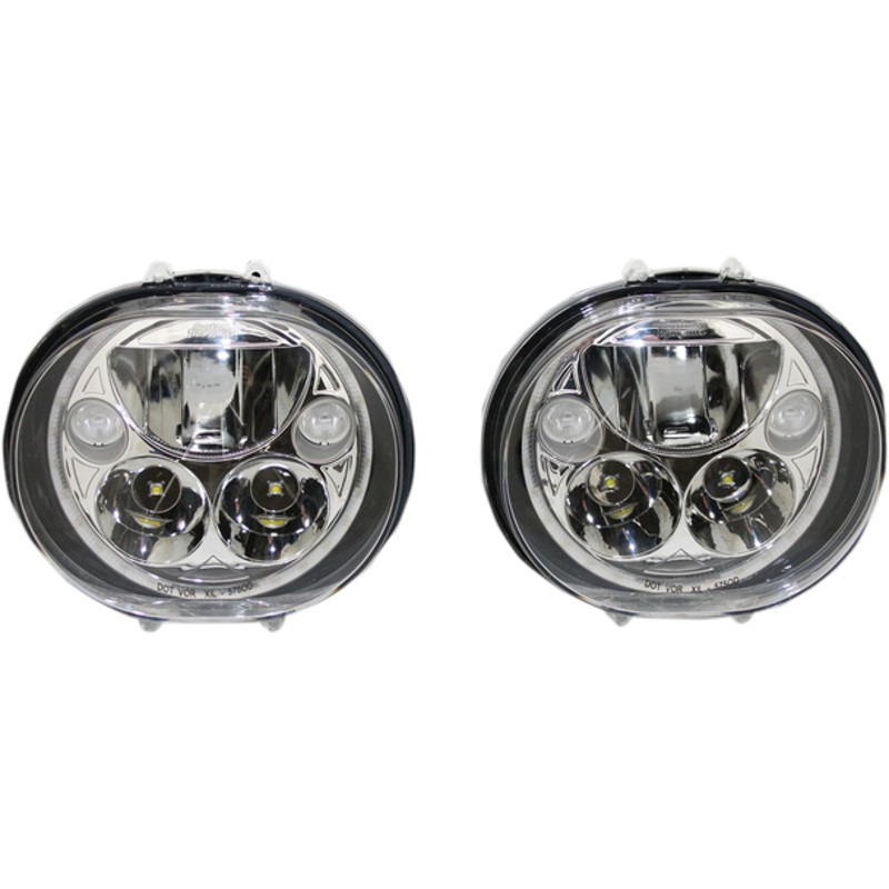 CUSTOM DYNAMICS LED Headlight 5-3/4" Chrome Pair CDTB-575OV-CComplex reflector design features three low-beam LEDs and two high-beam LEDs; optional hi/low adapter allows all to be lit at once, Combination of reflector and projector type LEDs results in sup