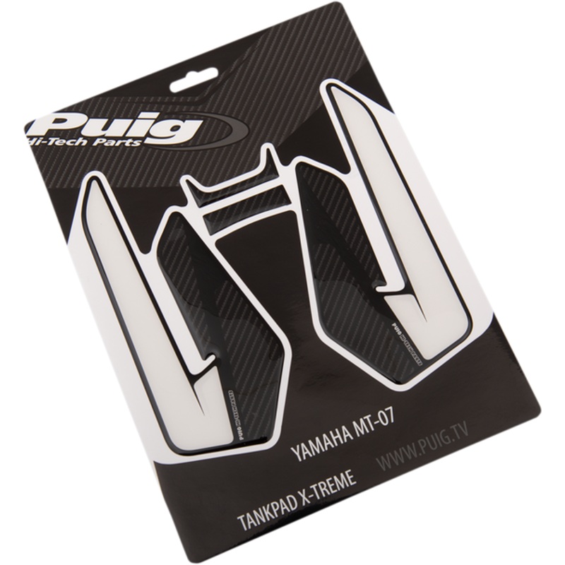 PUIG HI-TECH PARTS Tank Pad FZ07/MT09 8438CImpact, Scratch and UV resistant, Adhesive kit includes front pads and two side pads that improve grip on curves, Resin material with transparent and carbon look sections, Instruction sheet included for assembly C