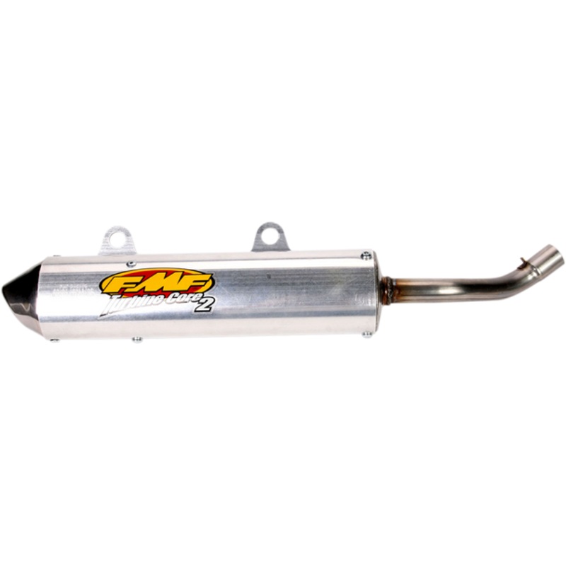 FMF Turbinecore 2 Silencer 020357Uses the exclusive "Turbine Dampening System", Straight-through design of the spark arrestor canister and the Performance Flow stainless steel end cap ensure strength, durability and unrestricted power