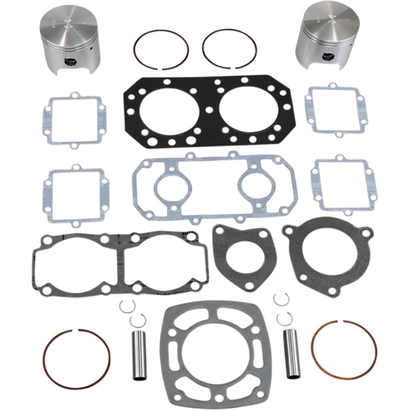 Most Wiseco 2-cycle pistons are forged from high-silicone bar stock, Greater strength and lower expansion at high temperatures, Complete piston kits include High-Performance forged pistons, rings, wrist pins, circlips and top-end gasket kit for one complet