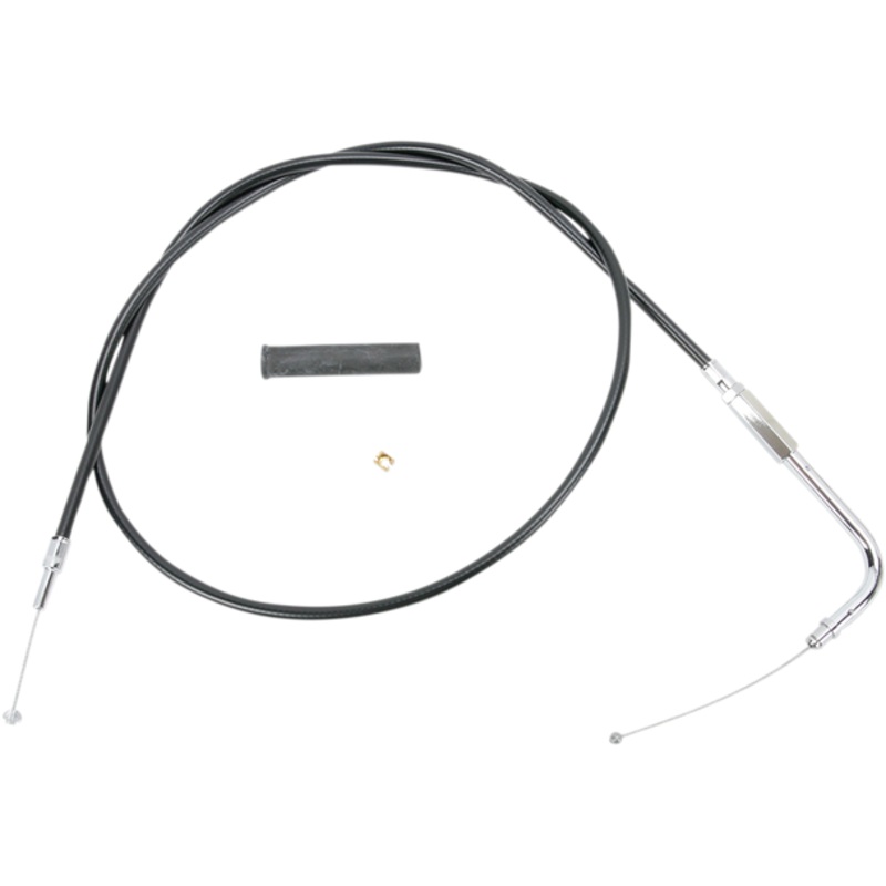 DRAG SPECIALTIES Throttle Cable 49" Vinyl 4332109BCables feature polished-chrome fittings, black vinyl outer casings, tempered-steel inner conduit and an inner nylon liner for smooth operation and long life, Length given is the length of the outer housing