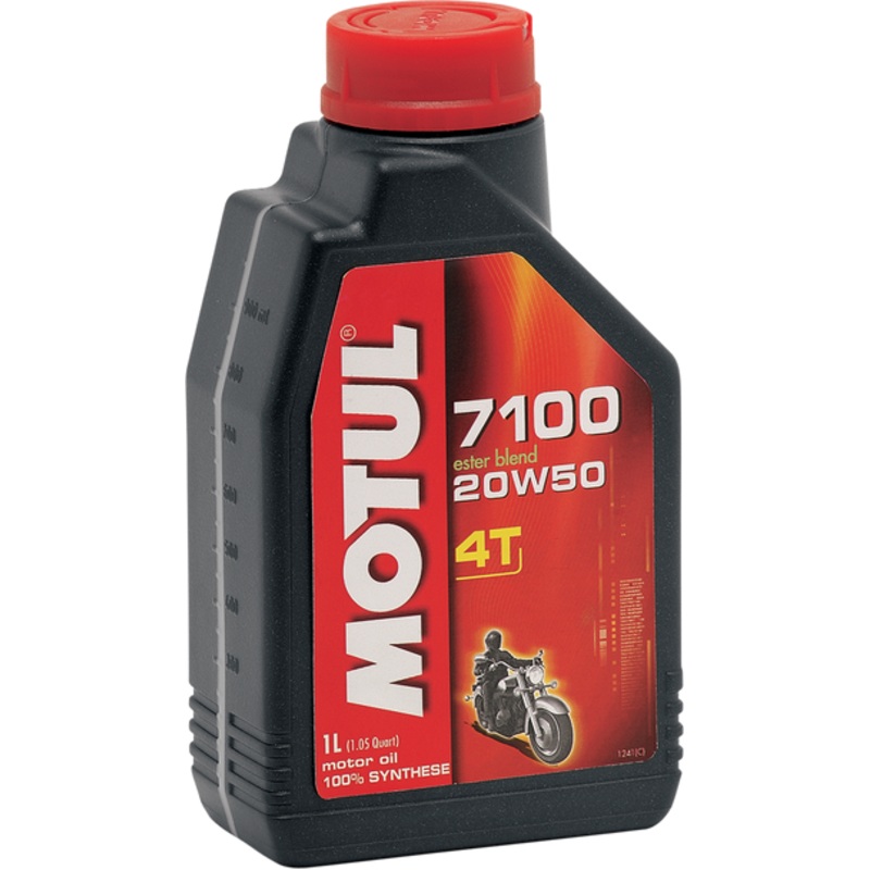 MOTUL 7100 4T Synthetic Oil 20W-50 1 L 104103100% synthetic 4-stroke lubricant, Ester Technology, improves engine response, Recommended for all 4-stroke motorcycles with catalytic converters, Proprietary Extreme pressure formula to protect the gearbox, Mee