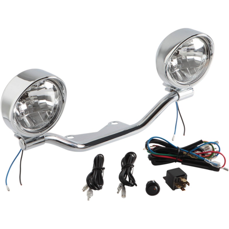 SHOW CHROME Spotlight Kit VT1100C2 1-232Pair of highly polished 3" spotlights with high-intensity 55W H3 halogen bulbs, Complete with mounting bar bracket; mounts on fork under headlight, Wiring harness with relay included, Easily adjusts for dimming HEIGH