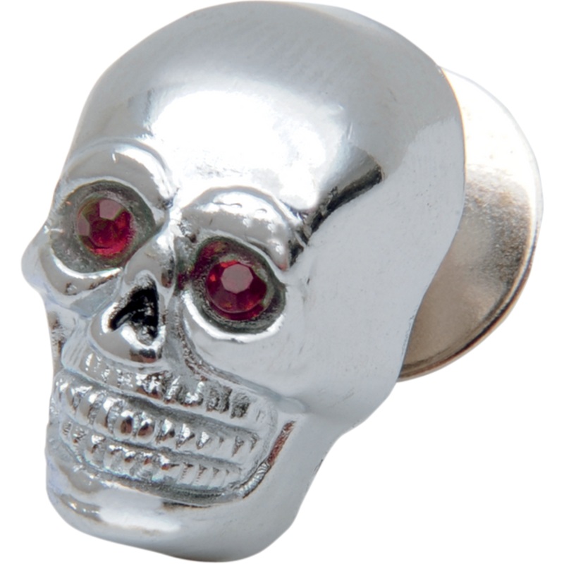DRAG SPECIALTIES Small Chrome Skull with/Red Eye 74401RFor decorative purposes only; not intended to replace fastening/locking nuts, Features a removable stud with nut and washers APPLICATION: