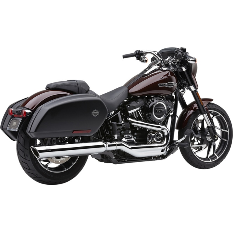 COBRA 909 Twin Muffler for FLSB Chrome 6520Features a unique scalloped and smooth rolled outer tip that is matched with a scalloped inner tip, This "Twin" tip design gives an elegant look, especially because there are no visible outer screws securing the c