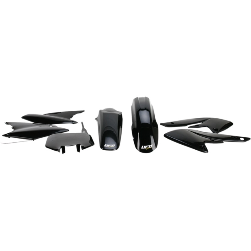 UFO Replacement Body Kit Black KXF250 KAKIT203-001Pre-drilled pieces mount easily to stock locations, Body kit includes front and rear fender, radiator covers, side panels and front number plate; OEM matches stock bike color, Easy bolt-on installation, Mad
