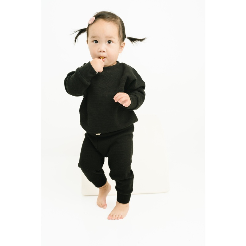 Two Piece Crewneck & Joggers SetWaffle Knit FabricElastic WaistbandTrue to size