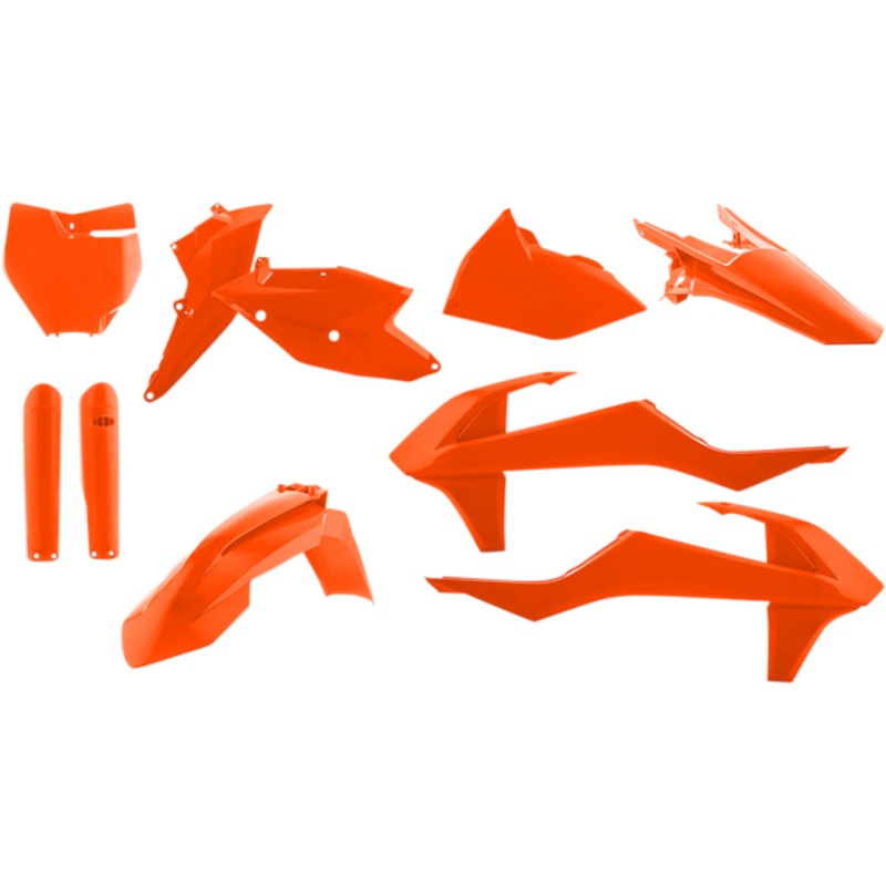 ACERBIS Full Replacement Body Kit Orange KTM 2421065226Full kit includes front fender, front number plate, lower fork cover set, radiator shrouds, side panels, and rear fender, High-quality, direct replacement plastic kit, Original factory shape MOUNTING P