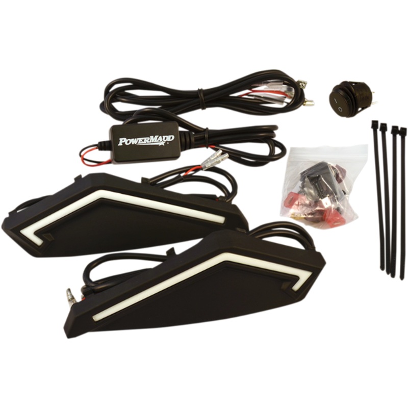 POWERMADD/COBRA Light Kit Handguards 34290LED Light Kits increase your visibility and improve your peripheral lighting, Simply snap out your vent covers and snap in the LED light kit, Can be wired directly to your battery by using the included 12 volt wate