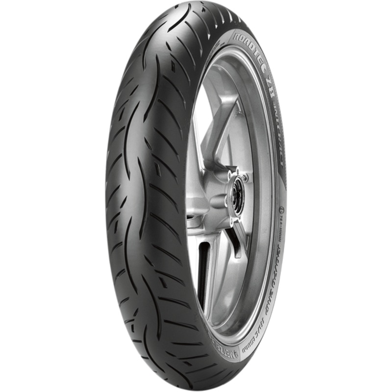 The Roadtec Z8 Interact also incorporates three tensions zones to provide best in-segment mileage and optimal wet performance throughout the tire’s life thanks to an innovative tread pattern, a widened and more elliptical footprint, and a host of wear-resistant technologies not normally seen in motorcycle tires, Metzeler’s patented tread pattern reduces front tire land-sea ratio to 11% and the rear tire land-sea ratio to 13%. Strategically placed longitudinal central grooves provide ideal drainage for more than 3/4 of all lean angles in the wet. The remaining tread grooves work to add tread flexibility, extending the footprint for stability in the dry, Everything about the new Roadtec Z8 Interact has been designed to put the rider in control; it responds like an extension of the rider’s instincts, creating an invigorating blend of precise riding feel and effortless handling, The profile matched with patented tread design provides easy handling and reduced push steering for maximum confidence in all maneuvers, The updated design of the Roadtec Z8 improves wear regularity, which gives riders the benefit of a consistent riding performance across the tire’s entire life, High-silica compound with nano-particles increases performance and safety in all weather conditions, A final footprint area 8% wider as compared to its predecessor, Tubeless (TL), Blackwall