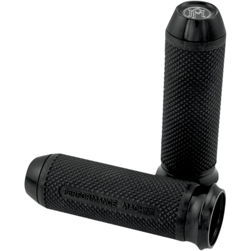 PERFORMANCE MACHINE (PM) Grips Elite TBW Black 0063-2028BDurable, knurled rubber sleeves with an embossed PM logo wrapped around machined billet grips, Optimal comfort and style, Made in the U.S.A. FOR HANDLEBAR DIAMETER IMPERIAL: