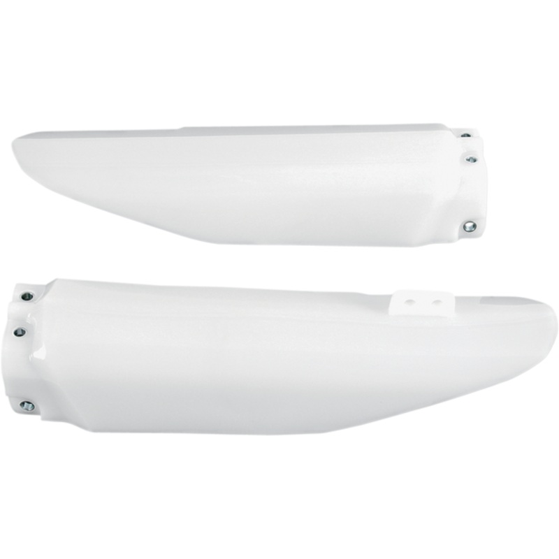 UFO Fork Cover White RM85 SU03907280Pre-drilled pieces mount easily to stock locations BASE COLOR: