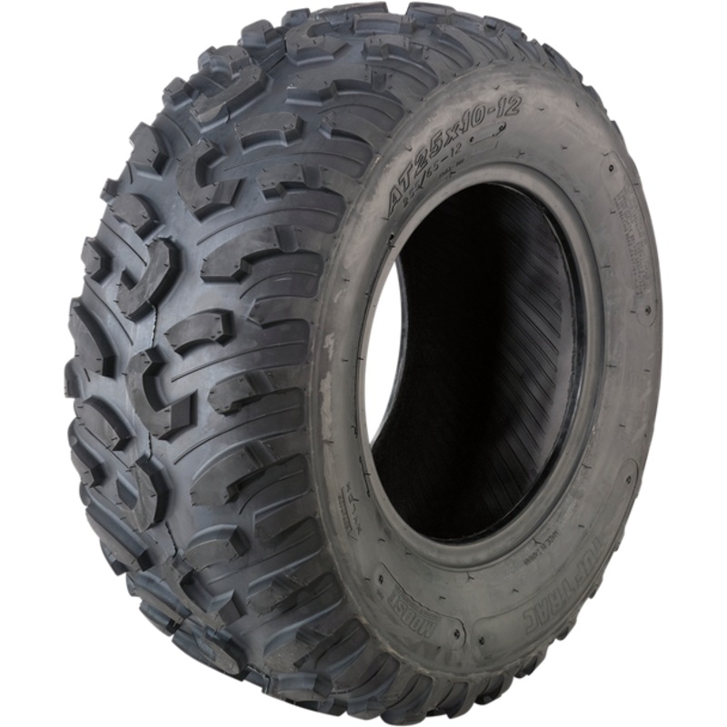 MOOSE UTILITY Tire Tuf Trac 25x10-12 4 Ply 253Q1071Wide tread profile improves tracking in rutted terrain, Directional design for good cleaning performance, Sizes to fit a vast range of 4x4 ATV applications, Tread pattern design for easy ride and rolling,