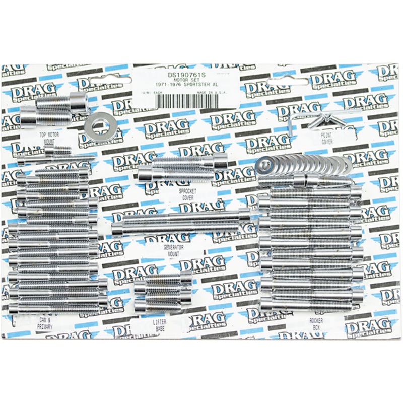 DRAG SPECIALTIES 71-76 XL Smooth Socket Head Motor MK118SContain socket-head bolts for cam, primary, generator, sprocket, rocker box, top motor mount, lifter base, point or magneto cover, Made in the U.S.A. BASE FINISH: