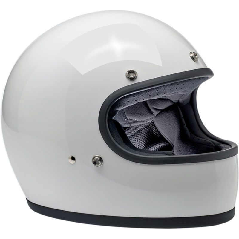 BILTWELL Gringo Helmet Gloss White XS 1002-517-101Injection-molded ABS outer shell with hand-painted finish, Expanded polystyrene inner shell, Hand-sewn, removable, brushed Lycra liner with contrasting diamond-stitched quilted open-cell foam padding, Inter