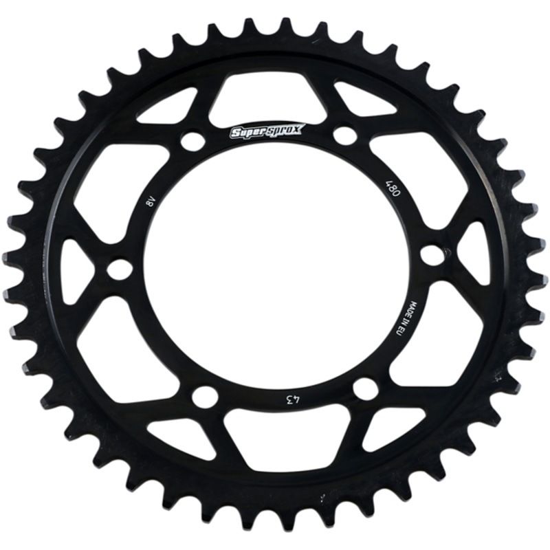 SUPERSPROX Edge Rear Sprocket Black 43-Tooth RFA48043BLKReduces weight by 5%-15% depending on the model, Cost effective option for mid-range bikes, Must order Edge Disc with Edge Steel Sprocket for OEM sprocket width TOOTH COUNT: