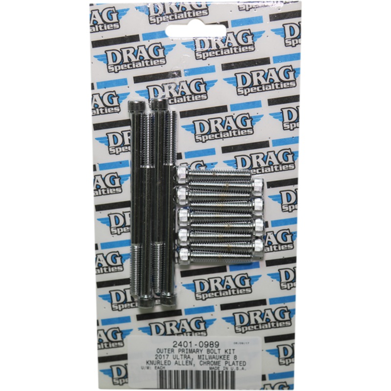 DRAG SPECIALTIES Bolt Kit M8 Outer Primary Knurled All Chrome MK787Made in the U.S.A., Bolt kits for M8 BASE COLOR: