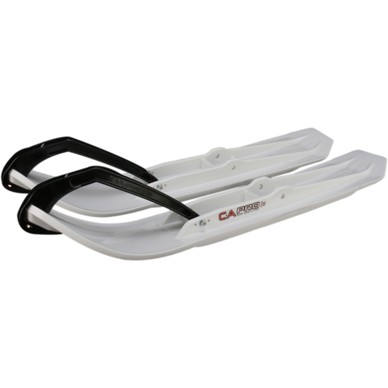 Skis are designed for top performance top modern 4-stroke machines in deep powder conditions that demand maximum flotation and agile steering, 8″ wide profile; the additional width provides an extended surface to give the front-end-lift needed in powder to reduce drag on components under the sled, Skis feature X Edge 90 design with rounded outer ribs and a contoured center keel for easy maneuverability when trail riding, Overall design is optimized to minimize weight with the increased width; just 6.8 lbs. with handle, Uses same handle, carbides and mounting kits as all other CA skis, Extra rear heel height for good carry in reverse, Adjustable flexible tip