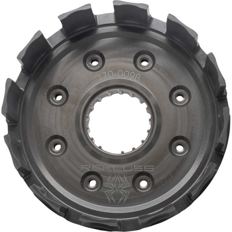 Rekluse clutch baskets are constructed from billet aluminum and hard anodized to deliver enhanced clutch modulation., Extreme durability resists notching and extends clutch life., Exclusive replaceable cushions protect your transmission from damage even in the most extreme conditions., Tightly controlled tolerances ensure smooth operation, less drag, and reduced clutch noise., Think of a clutch basket as the back-bone of your entire clutch system., Precision CNC machining combined with innovative world-class engineering allows Rekluse clutch baskets to safeguard your vital internal components, keeping you on the track or trail longer.