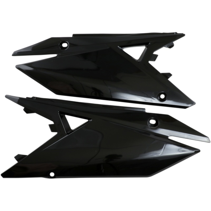 UFO Side Panels Black RMZ SU04942-001OEM matches stock bike colors, Pre-drilled for easy bolt-on installation, Made in Italy PRODUCT NAME: