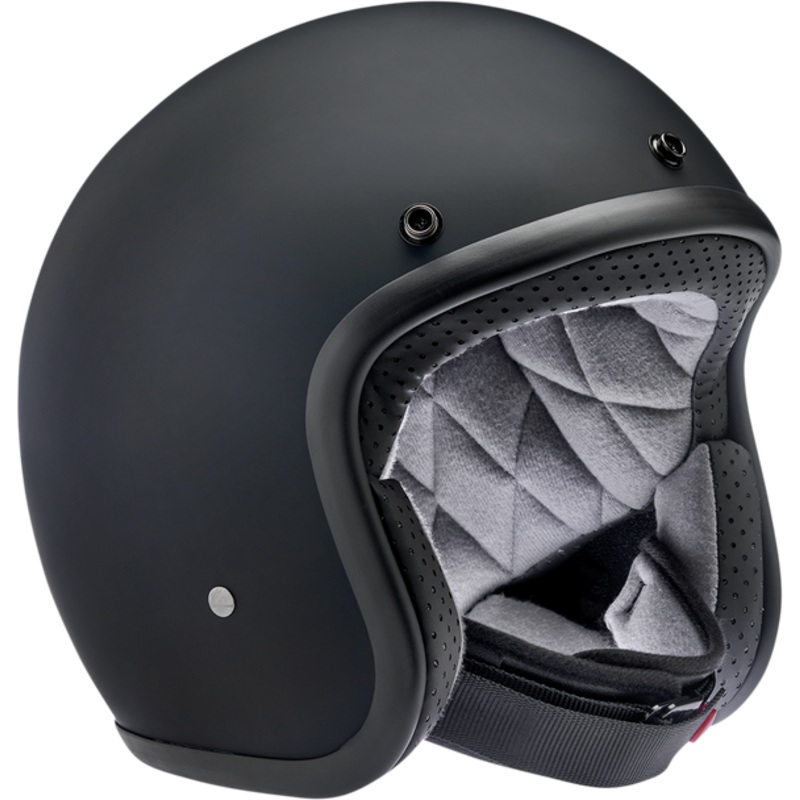 BILTWELL Bonanza Helmet Flat Black Factory XS 1001-638-201Injection-molded ABS outer shell with hand-painted finish, Expanded polystyrene inner shell, Hand-sewn, removable, brushed Lycra liner with contrasting diamond-stitched, quilted, open-cell foam padd