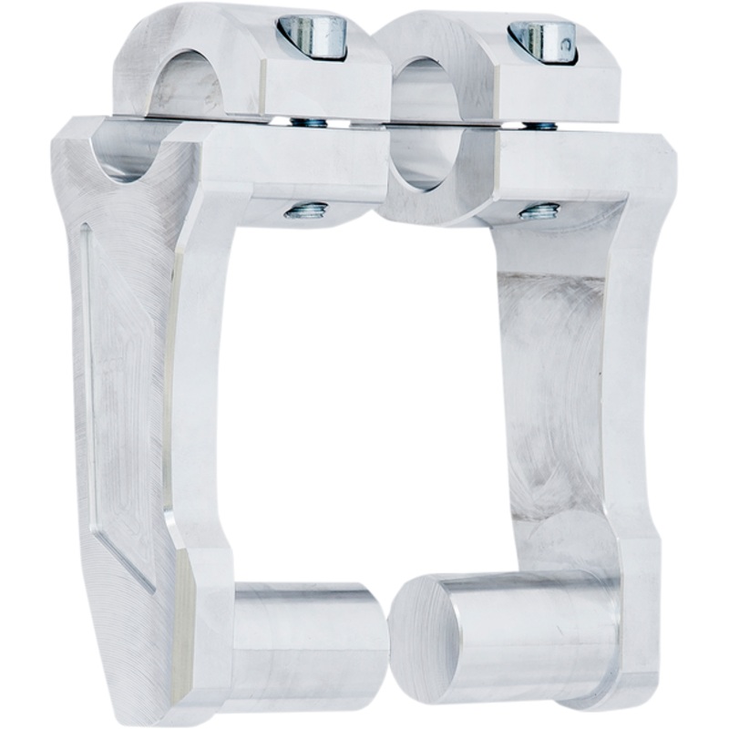 Patented pivoting handlebar risers mount on nearly any V-Twin with 1″ diameter handlebars and open mounting area, Risers can be positioned forward, backward or anywhere in between to allow the rider to truly customize the feel of their bike, Bottom fits 1″ handlebar clamps; 1″ bar clamp on the top side, Easy installation: remove current bar, place the stem of the risers where the bar was located previously then tighten it down; place the handlebar in the top side of the risers and tighten all bolts down securely, Constructed from aircraft-grade aluminum (6061-T6), Made in the U.S.A., Always check and confirm that your machine has adequate cable and brake line length before installing handlebar risers