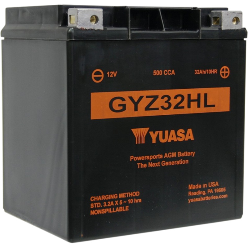 YUASA AGM Battery GYZ32HL YUAM732HLAGM (Absorbed Glass Mat) separators with superior grid and component designs, Improved charge recovery capability from a deeply discharged condition, Longer shelf life, Improved life cycle performance, Extreme vibration r