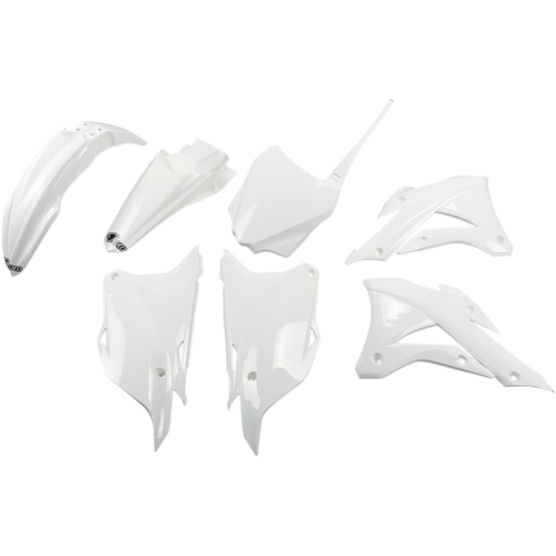 UFO Replacement Body Kit White KX85 KAKIT222-047Pre-drilled pieces mount easily to stock locations, Body kit includes front and rear fender, radiator covers, side panels and front number plate; OEM matches stock bike color, Easy bolt-on installation, Made