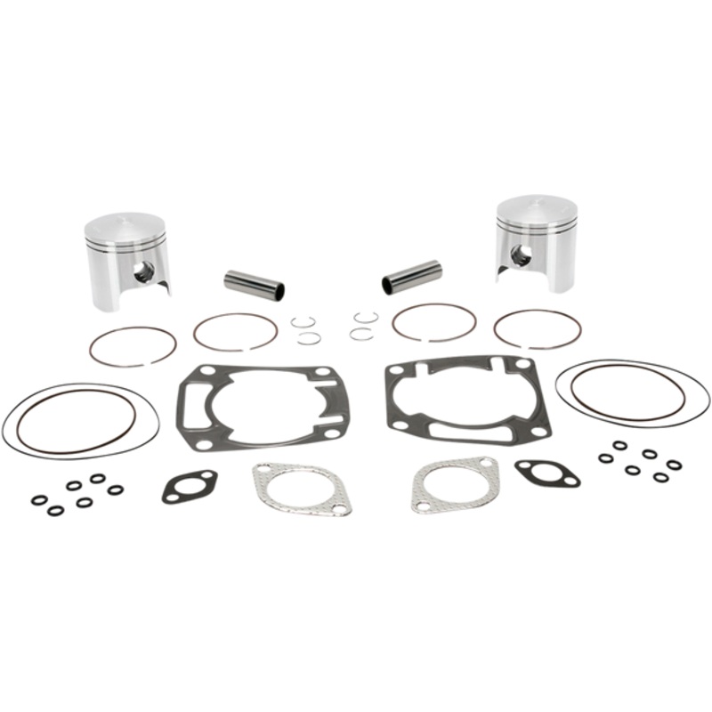Most Wiseco 2-cycle pistons are forged from high-silicone bar stock, Greater strength and lower expansion at high temperatures, Complete piston kits include High-Performance forged pistons, rings, wrist pins, circlips and top-end gasket kit for one complet